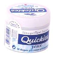 – Disques démaquillants pré-imprégnés d’huile – Quickies (environ 5€ en grande surface)