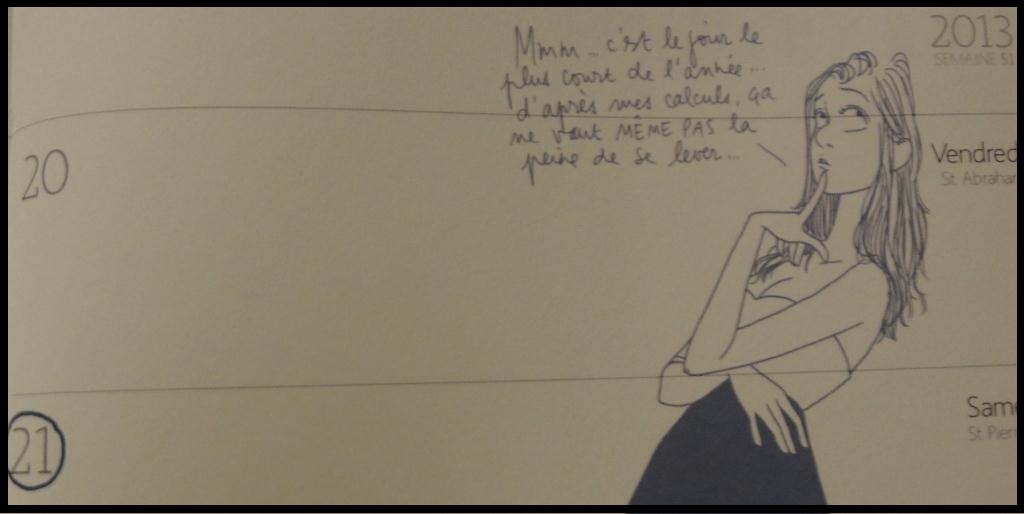 Fin décembre “Mmm… c’est le jour le plus court de l’année… d’après mes calculs ça ne vaut MÊME PAS la peine de se lever…” (je suis tellement d’accord)