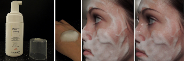 Pour éviter de mettre les doigts dedans (et les microbes qui vont avec) la marque a prévu un disque protecteur. On appuie aux extrémités avec 2 doigts, et la dose nécessaire ressort (une grosse noisette). On le dépose dans la main, on ajoute un peu d’eau et ça se transforme en sorte de chantilly. On applique sur le visage, on masse, puis on rince à l’eau claire. (eeeeeet ? oui, on finit par l’eau thermale, c’est bien, vous apprenez vite ^^)
