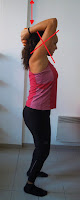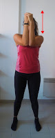 8) Les biceps/triceps : on garde les coudes collés sur les oreilles, ils ne bougent pas. Seuls tes avants bras font des mouvements de haut en bas derrière toi.