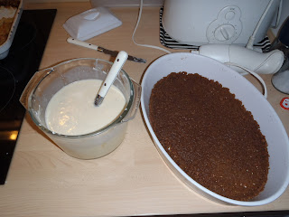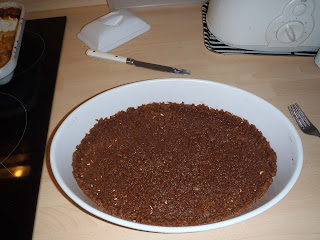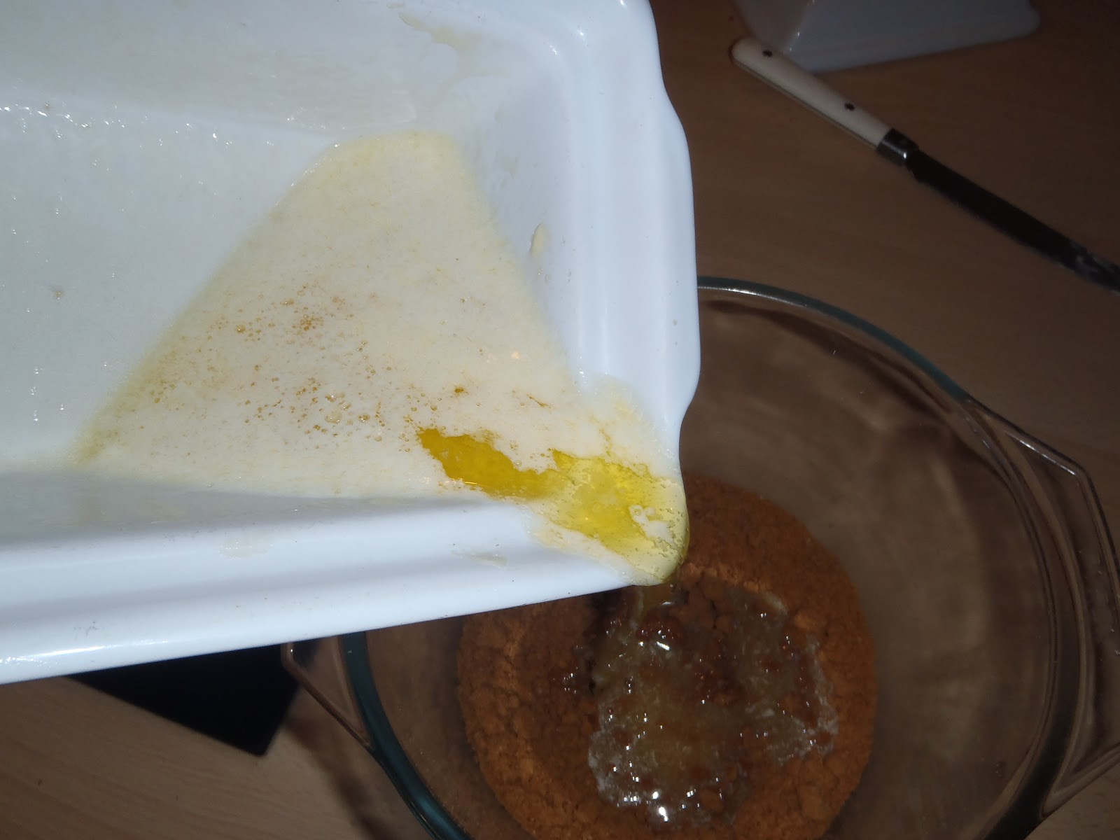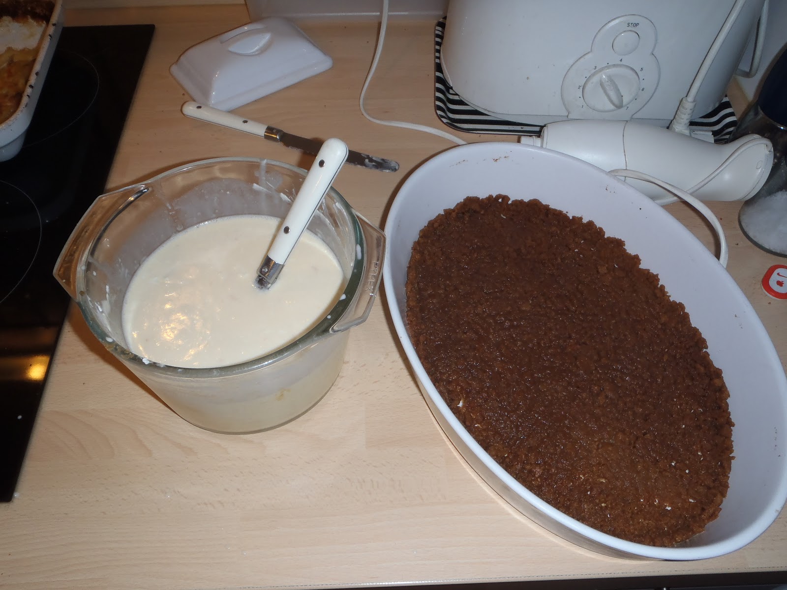 Ensuite, faîtes fondre le beurre au micro-ondes et mélangez-le avec les spéculoos écrasés, versez le tout dans un plat profond et répartissez le mélange sur tout le fond du plat en faisant attention à faire un petit rebord sur le contour intérieur du plat.