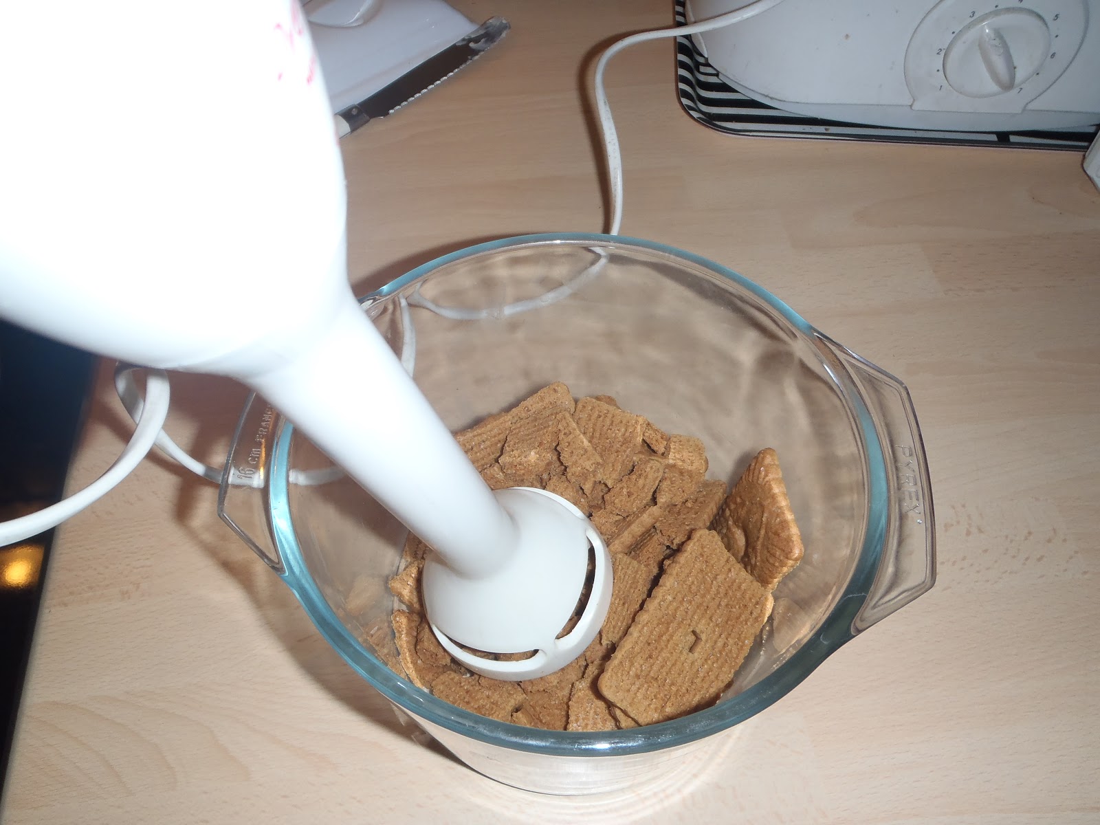 Pour commencer, écrasez vos spéculoos, vous pouvez utiliser un mixer mais attention ça vole pas mal, ou alors utilisez le mixeur pour écraser les gâteaux comme un pilon, c’est ce que j’ai fait au final, comme j’en mettais partout en activant le mixeur!!!!